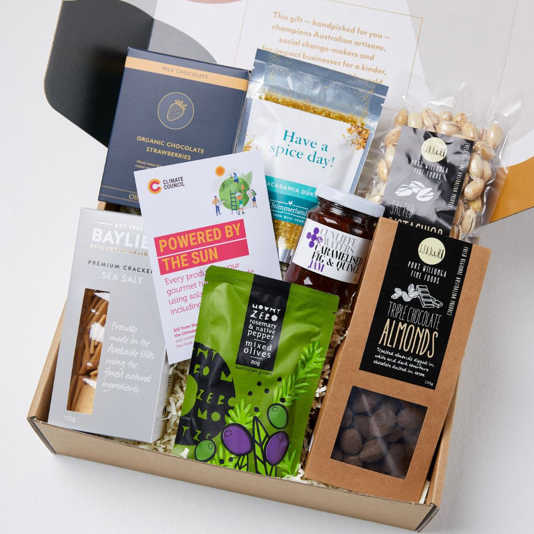 EVERY product in this Australian gourmet hamper is produced using renewable solar energy, including the box!