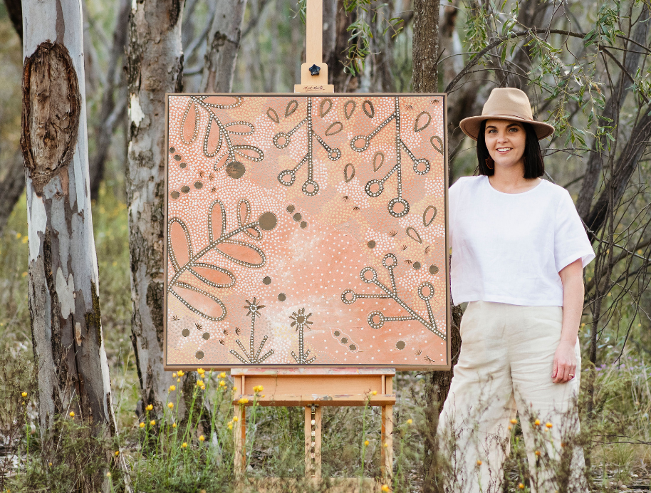 The Wiradjuri founder and artist behind Because of My Four believes that change starts with meaningful conversations; person to person and on the canvas.