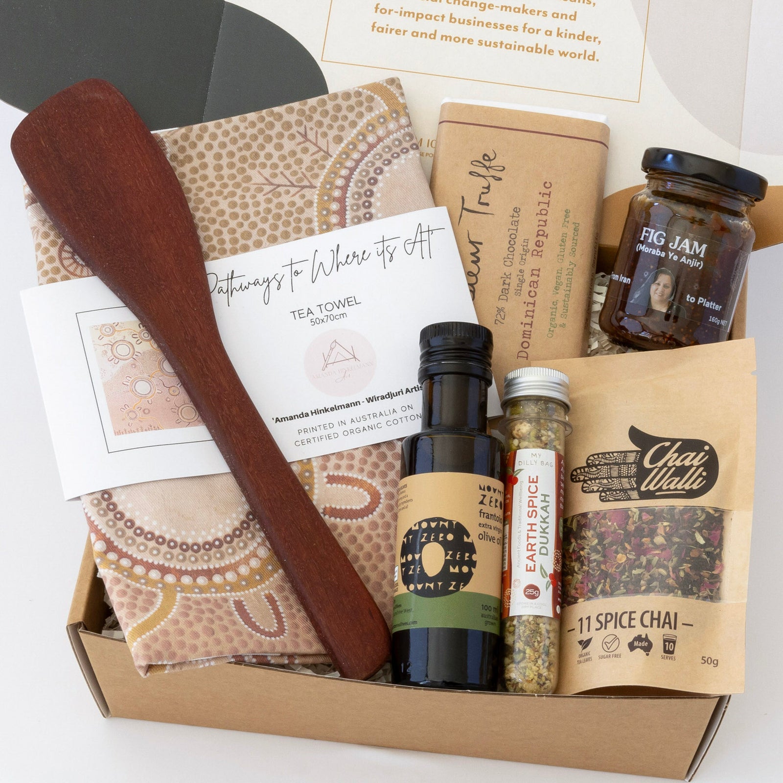 This stunning artwork - exclusively painted for Curated with Conscience - is showcased on the greeting card that's included in every hamper order.