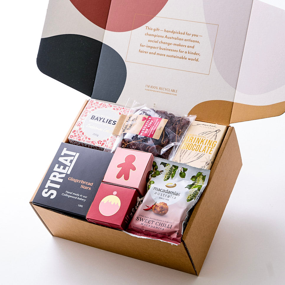 Comprising locally-sourced, small batch treats handcrafted using premium ingredients, the Festive Treats hamper is delicious and supports STREAT, a wonderful hospitality social enterprise that helps disadvantaged young people in Melbourne.