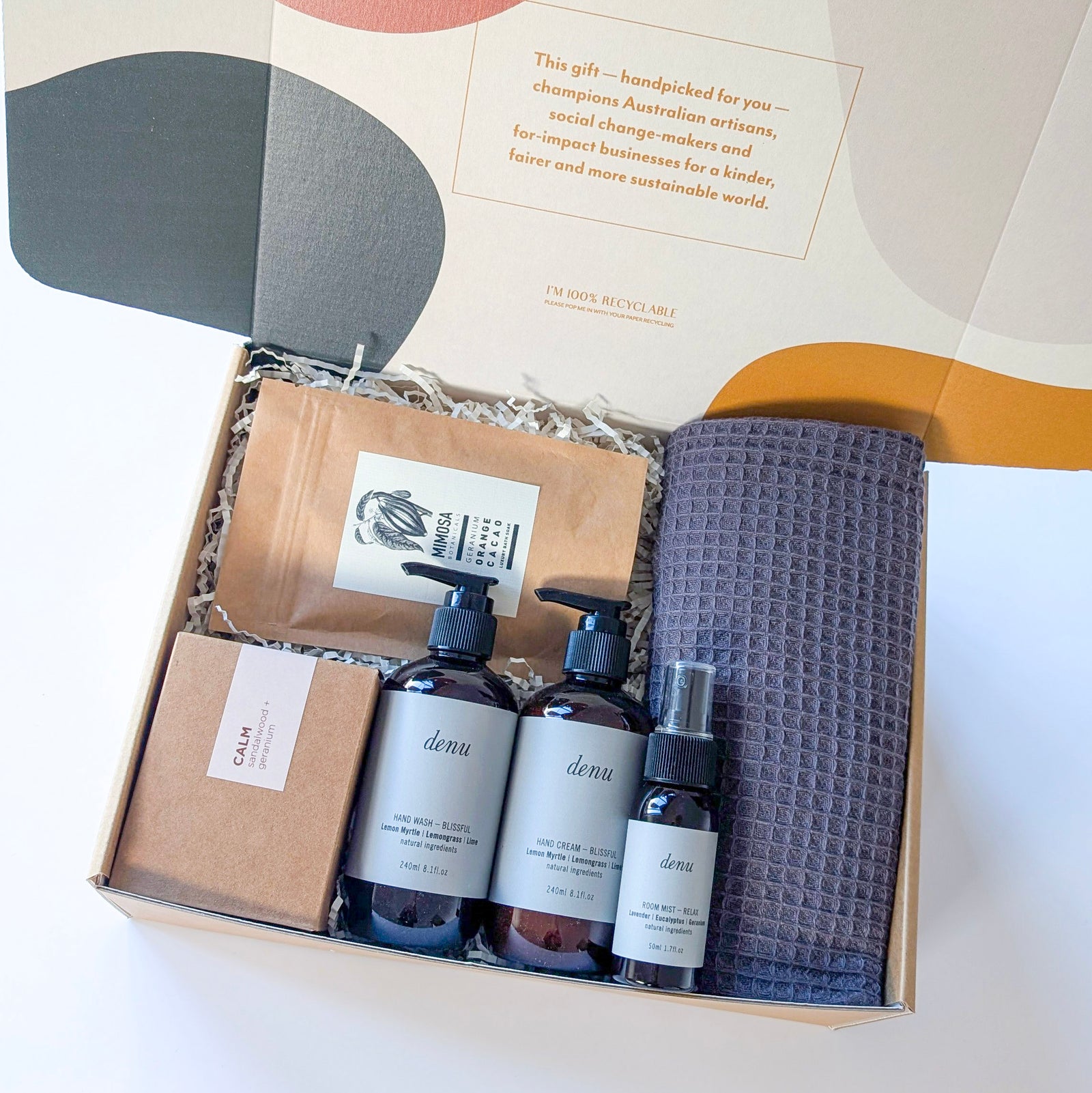 Not all gifts are created equal. A Curated With Conscience housewarming hamper is carefully packed with products from Australian makers who put purpose at the centre of what they do – from gourmet food producers to sustainable lifestyle brands.